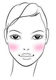 Esse formato de rosto permite duas maneiras de aplicar o blush.