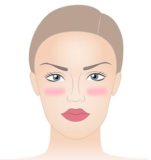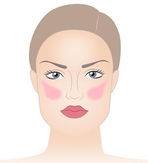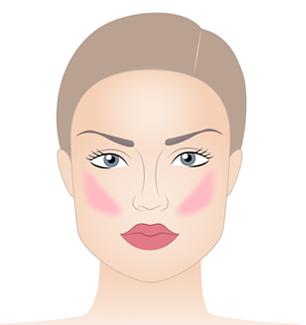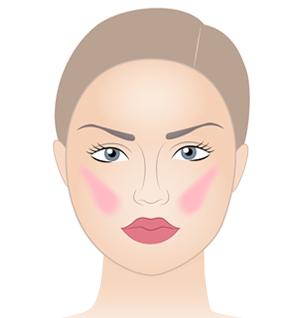 Essa forma de rosto só permite uma maneira de aplicar o blush.