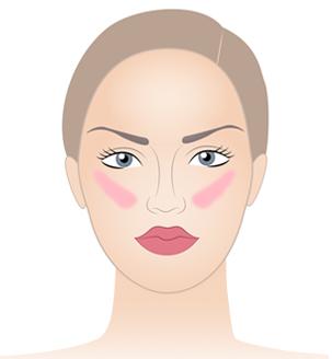 Esse formato de rosto permite duas maneiras de aplicar o blush.
